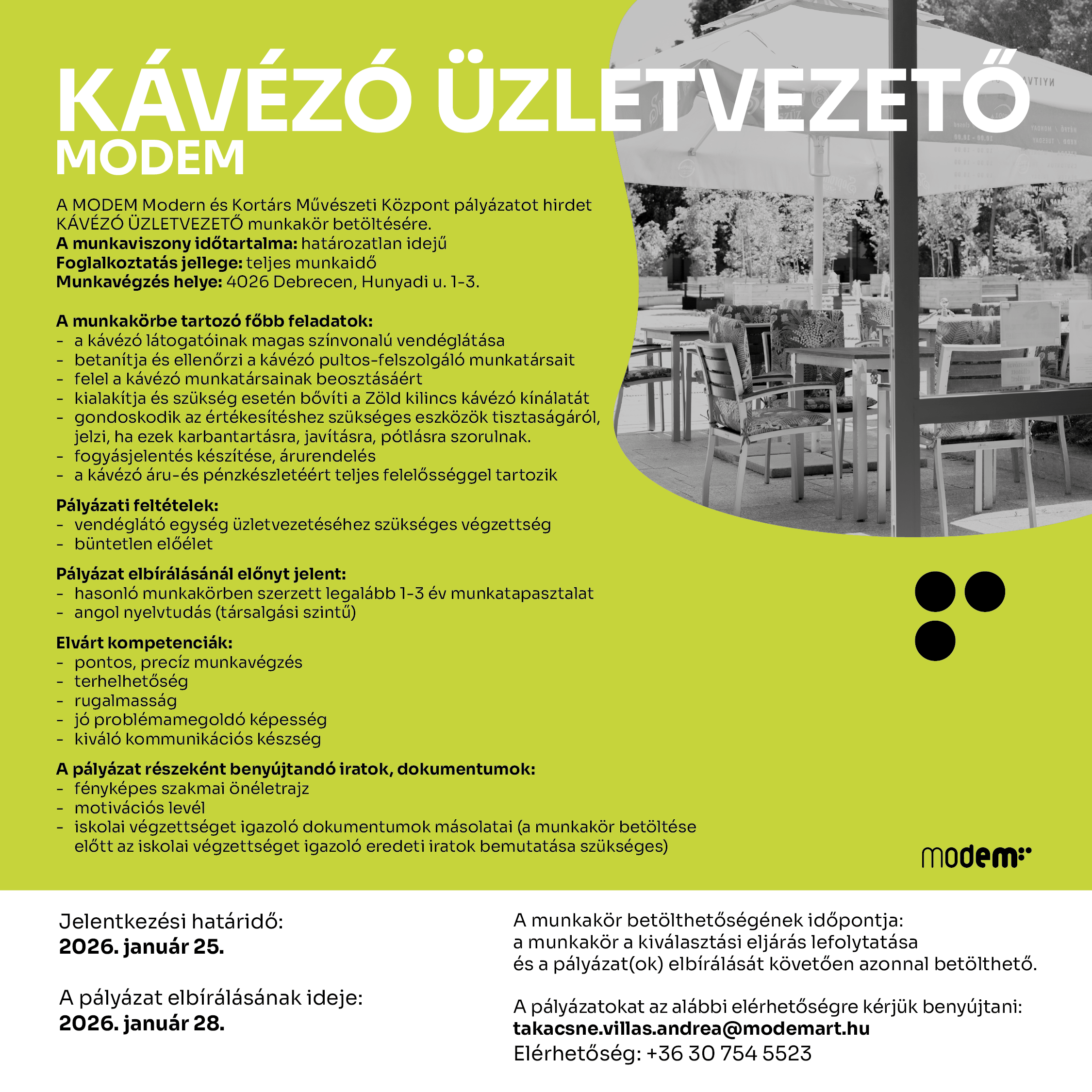 Álláslehetőség a MODEM-ben: Kávézó üzletvezető