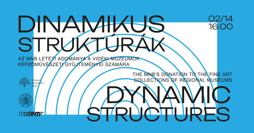 Szeretettel várunk minden érdeklődőt a február 14-én 16 órától kezdődő Dinamikus struktúrák – Az MNB letéti adománya a vidéki múzeumok képzőművészeti gyűjteményei számára című kiállítás első programnapjára a MODEM-be!