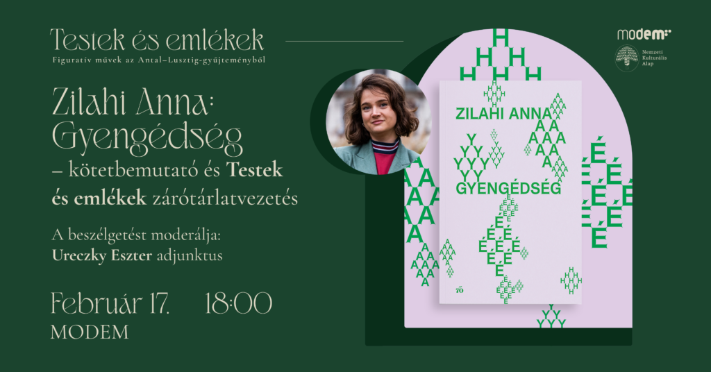 Szeretettel várunk mindenkit Zilahi Anna Gyengédség című kötetének bemutatójára, valamint a Testek és emlékek című kiállítás záró tárlatvezetésére 2026. február 17-én, 18 órától a MODEM-ben.